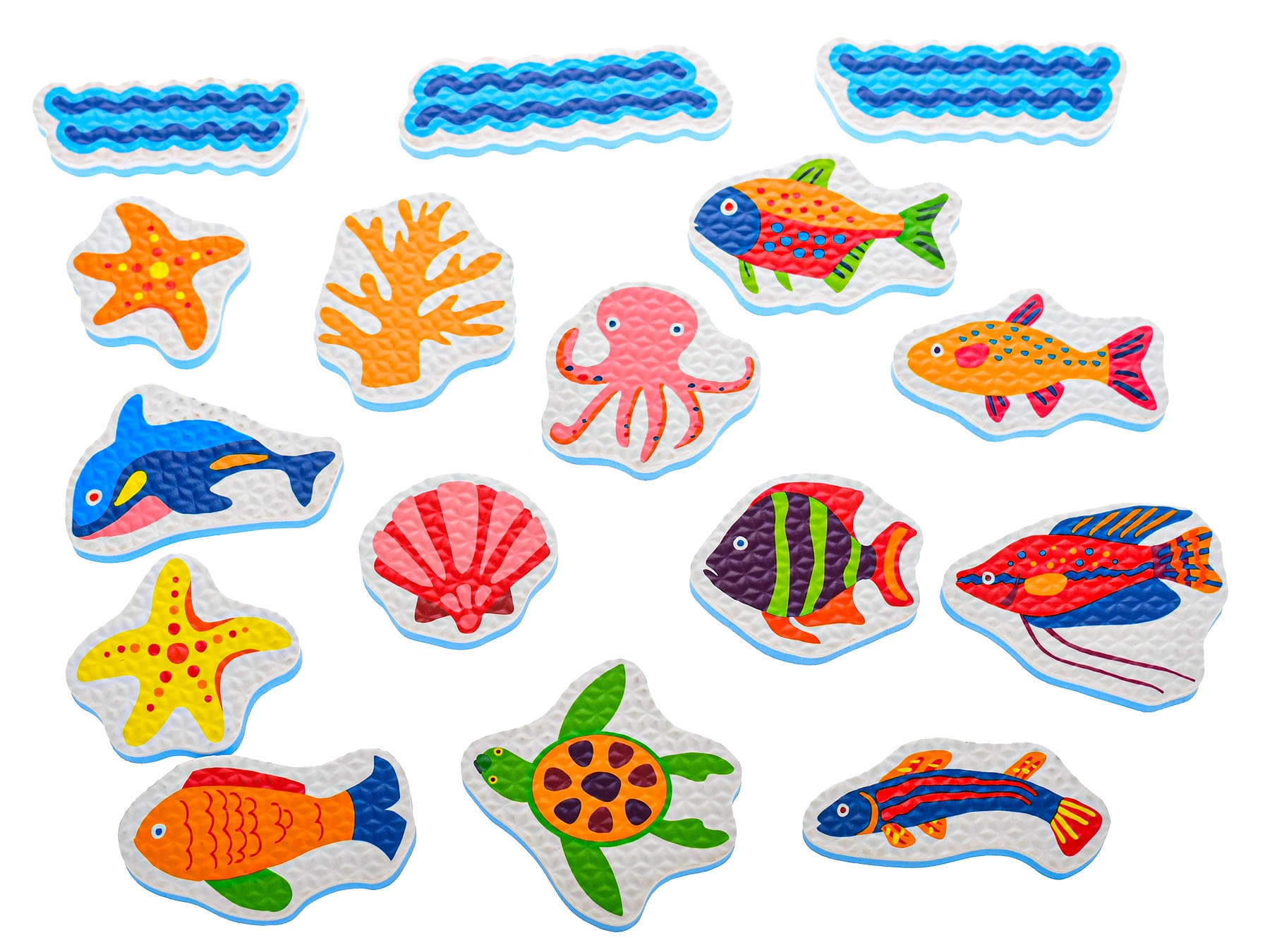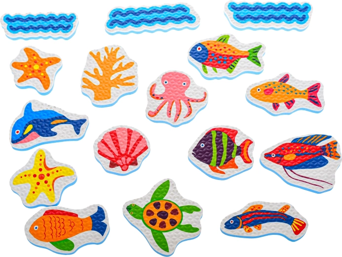 Piankowe naklejki do wanny z morskimi zwierzątkami zamienią każdą kąpiel w radosną przygodę. Dzieci mogą tworzyć własne podwodne opowieści, uczyć się kolorów i kształtów, a jednocześnie ćwiczyć małą motorykę. Lekkie piankowe figurki po zmoczeniu trzymają się gładkich powierzchni, takich jak płytki czy ścianki wanny, a po zabawie łatwo je przechować w dołączonej siateczce.