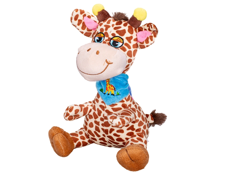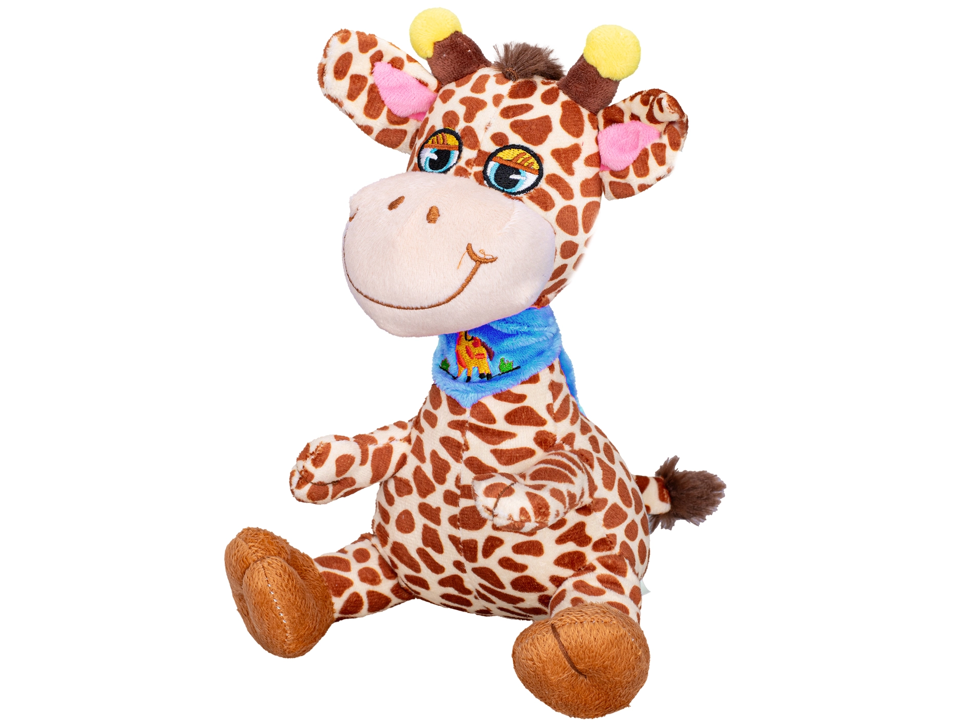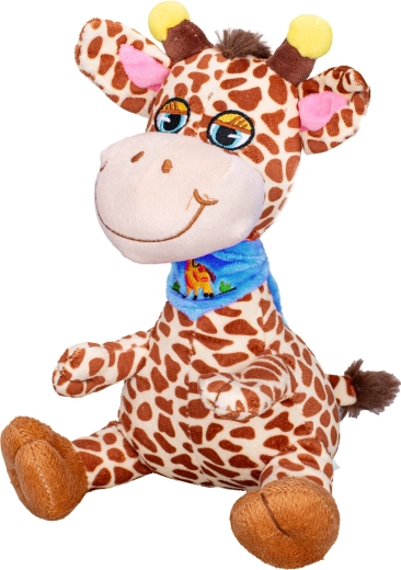Ta pluszowa żyrafa zachwyci dzieci już od pierwszego dotyku. Delikatny, wysokiej jakości materiał jest przyjemny dla skóry i bezpieczny dla niemowląt, a siedzące wykonanie zapewnia stabilność podczas zabawy i jako urocza dekoracja do pokoju dziecięcego. Dzięki kompaktowej wysokości 20 cm łatwo mieści się do wózka, torby czy łóżeczka.