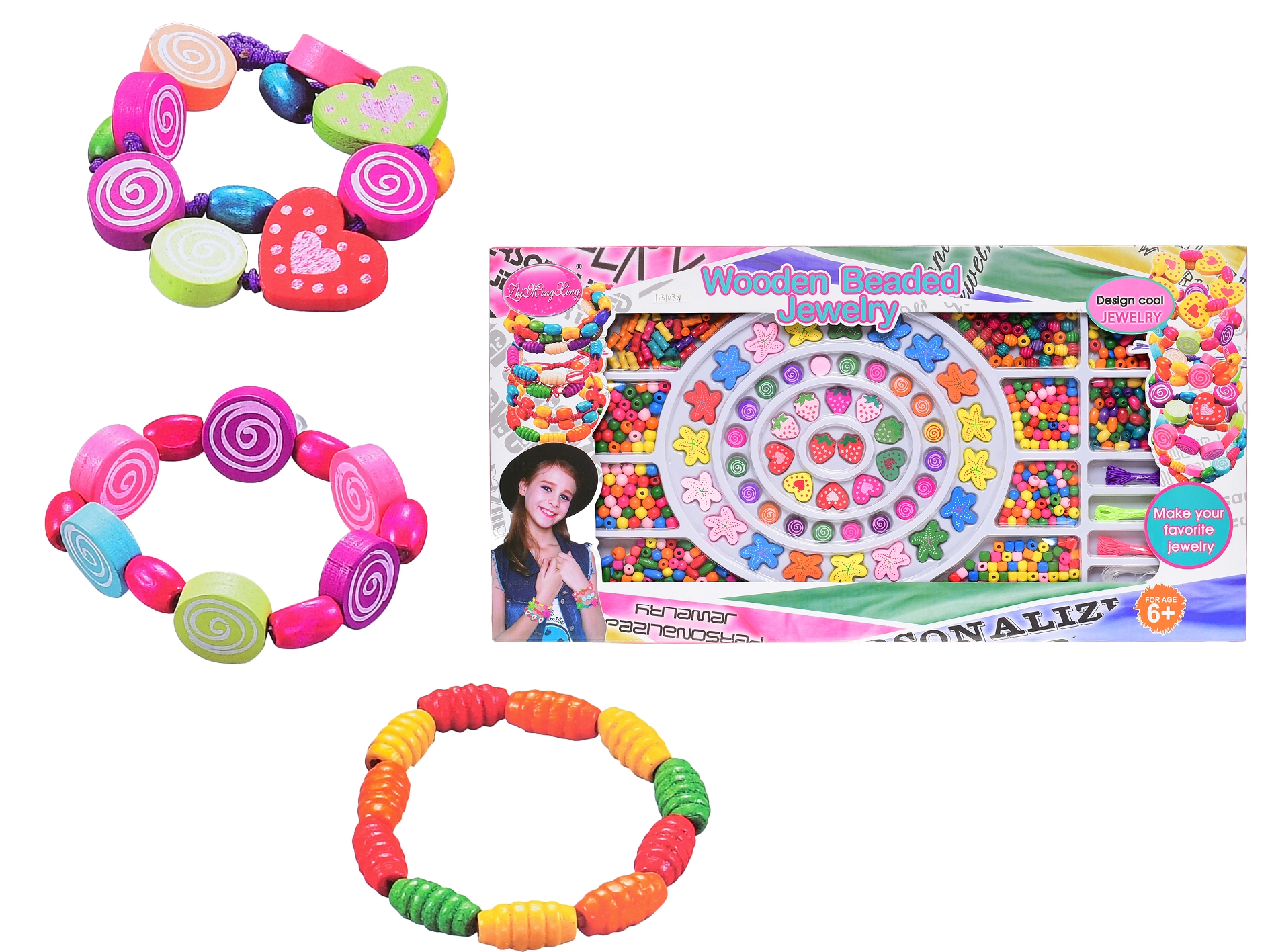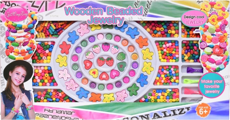 Wspieraj dziecięcą wyobraźnię i zręczność dzięki temu zestawowi drewnianych koralików do nawlekania w praktycznym pudełku. Różne kształty i kolory, w tym motylki i kwiatuszki, pozwalają tworzyć oryginalne bransoletki, naszyjniki i zawieszki. Zabawka rozwija motorykę małą, koordynację ręka–oko i cierpliwość i jest odpowiednia dla dzieci od 6 lat. Spełnia europejskie normy bezpieczeństwa.