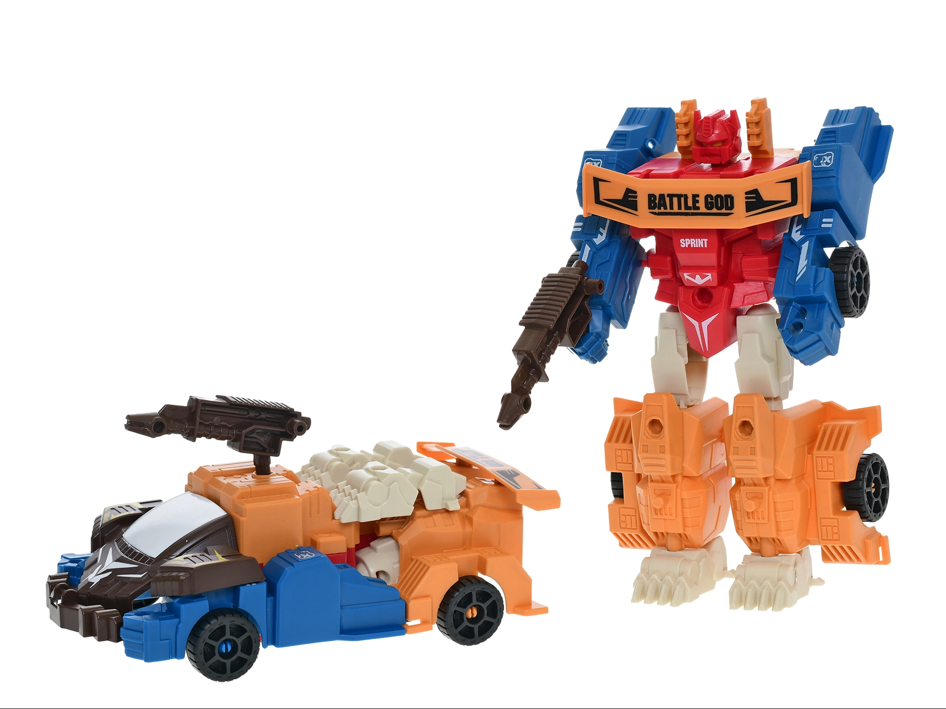 - 2 w 1: wyścigowe auto i bojowy robot