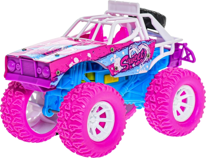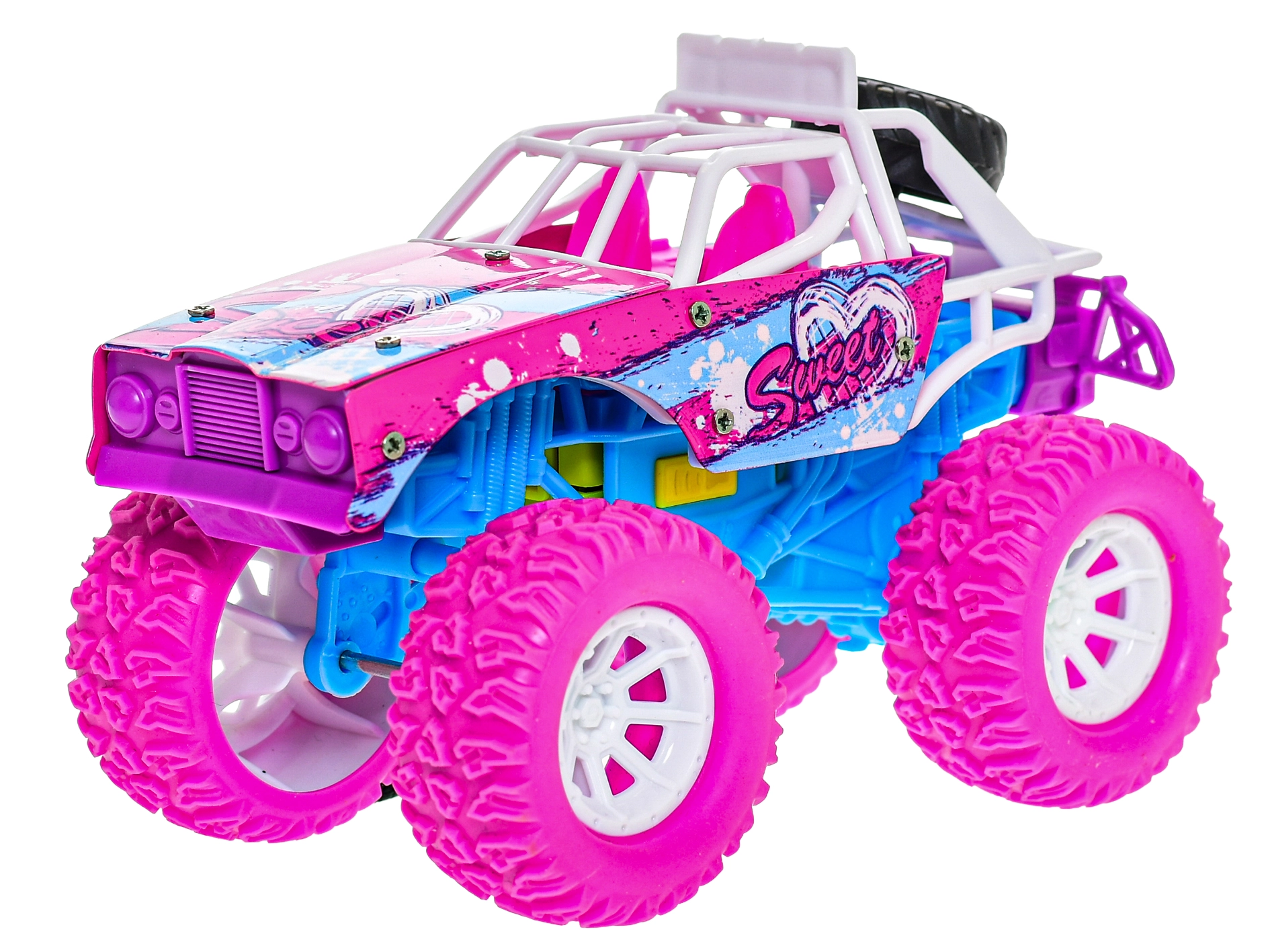 Odkryj nieograniczoną zabawę z samochodem terenowym, który łączy realistyczny napęd bezwładnościowy z solidną konstrukcją z metalu i plastiku. Dzięki atrakcyjnemu różowo‑niebieskiemu zestawieniu kolorów i dużym kołom dzieci będą cieszyć się dynamiczną jazdą w domu i na zewnątrz.