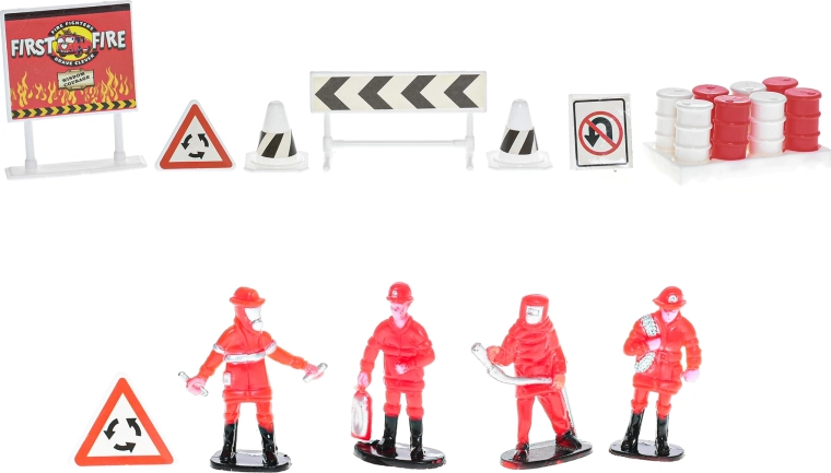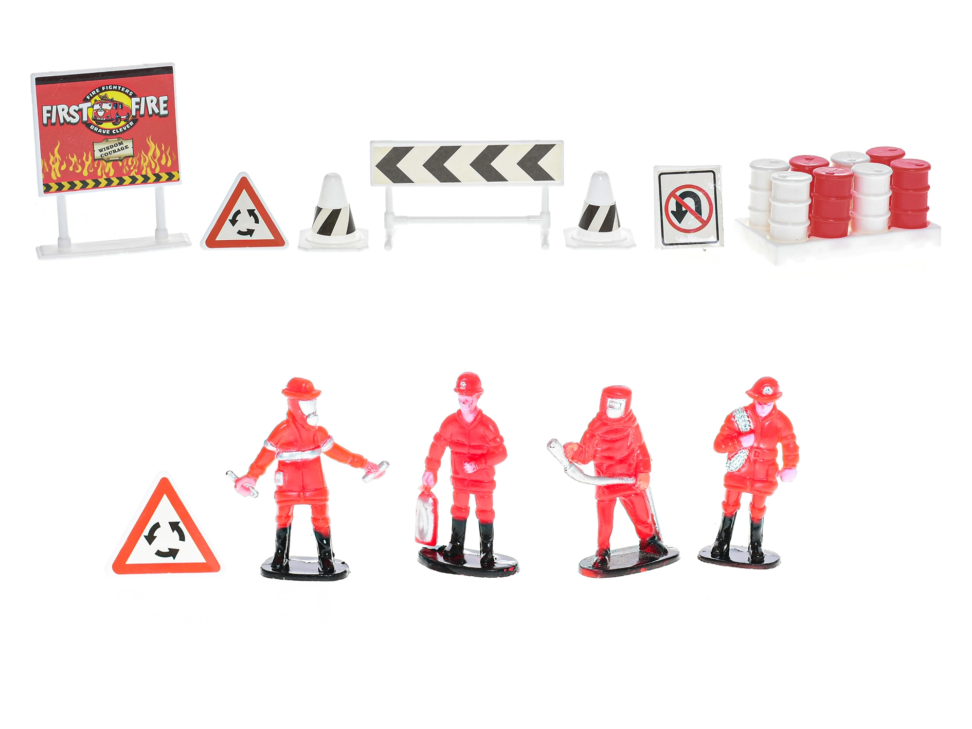 - pojazdy z napędem typu freewheel, 4 figurki strażaków z akcesoriami