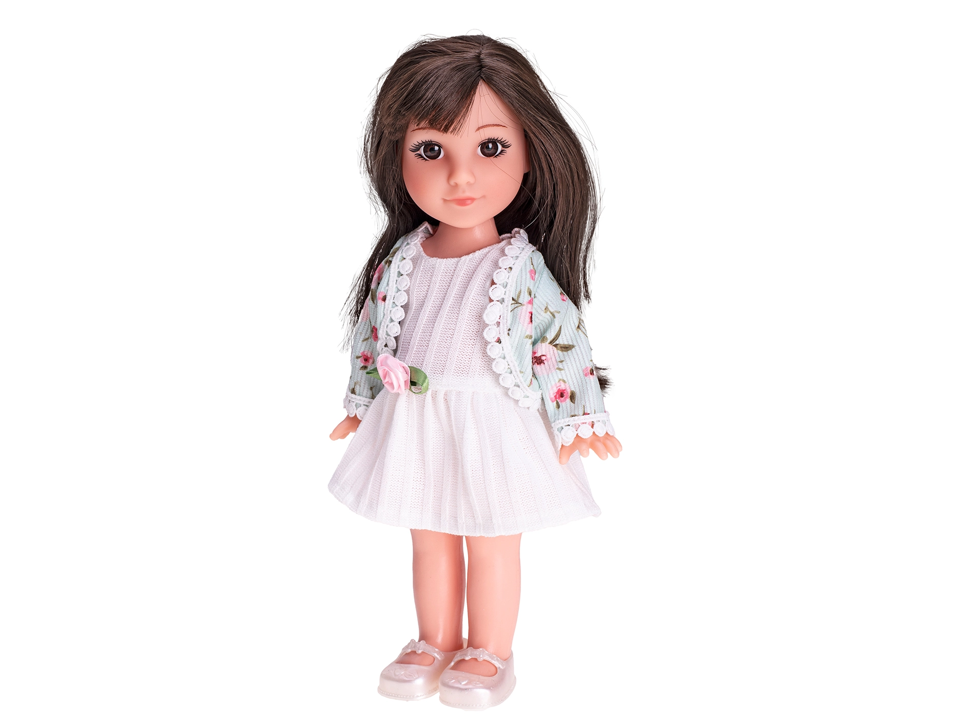 Lalka jest dostępna w dwóch stylowych wersjach: ogrodniczki w zestawie z pasiastą koszulką dla swobodnego wyglądu lub elegancka sukienka z bolerkiem na uroczyste chwile. Dostarczana w ozdobnym pudełku, dzięki czemu doskonale sprawdzi się na urodziny, Święta i jako miła niespodzianka.