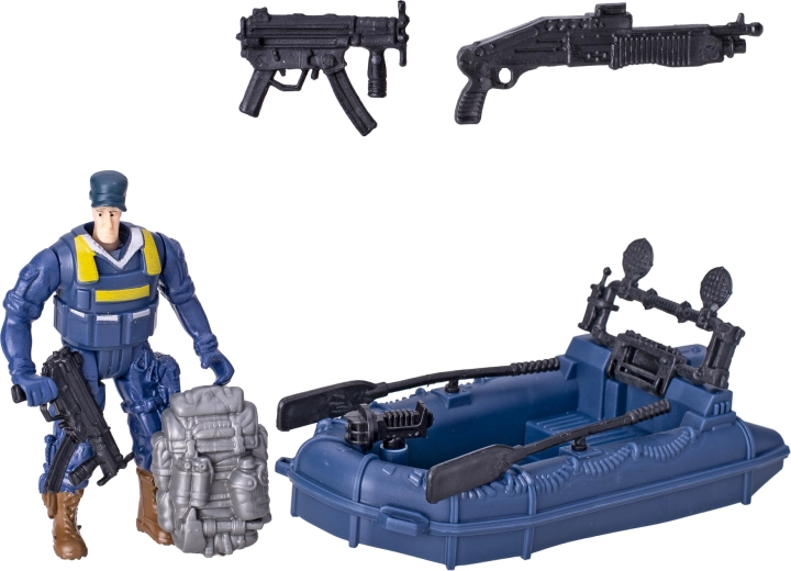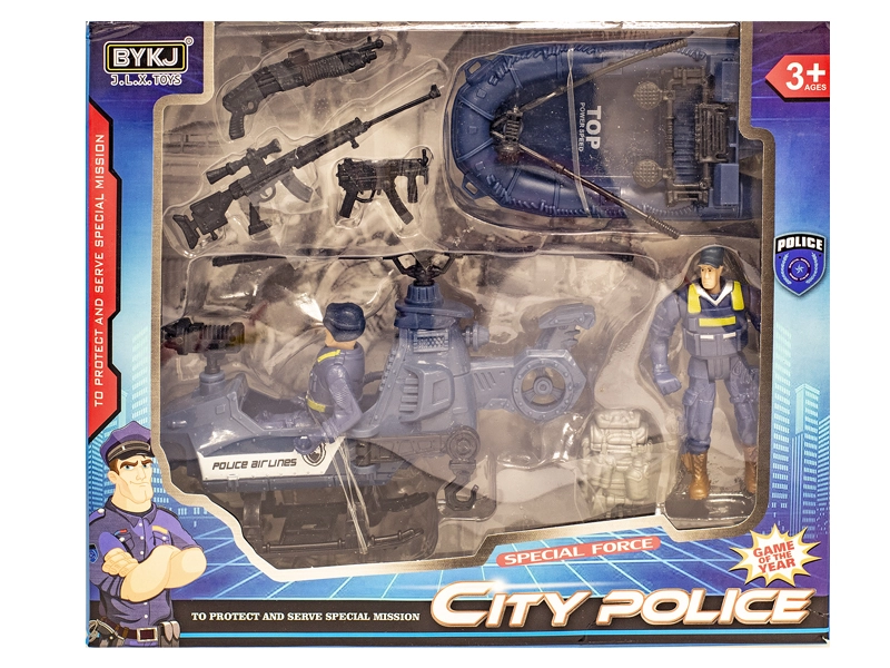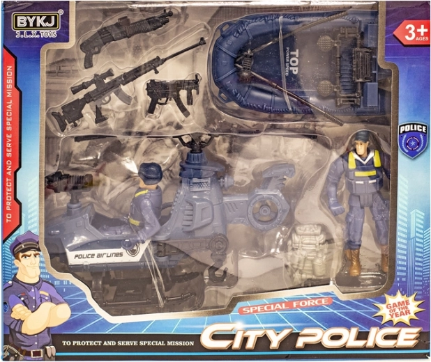 - Helikopter, łódź, figurki policjantów i akcesoria