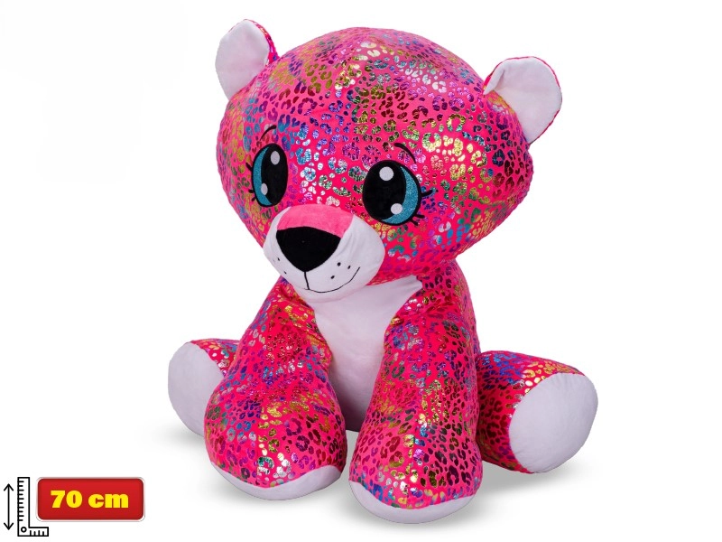 Uroczy pluszowy lampart z tęczowym ubarwieniem i błyszczącymi detalami na uszach i łapkach podbije serca dzieci od pierwszego wejrzenia. Przy wysokości 70 cm w pozycji siedzącej jest idealny do przytulania i jako dekoracja pokoju dziecięcego. Miękki, wysokiej jakości plusz zapewnia maksymalny komfort i bezpieczną zabawę dla dzieci od 3 lat.