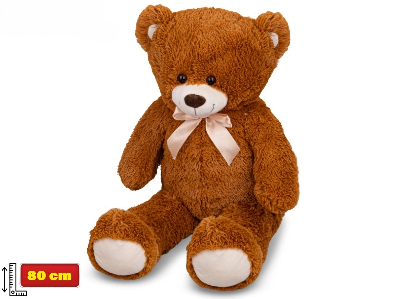 Przywitaj w swoim domu miękkiego przyjaciela, który ucieszy małych i dużych. Ten duży pluszowy miś o wysokości 80 cm jest wykonany z delikatnego i przyjemnego w dotyku pluszu, który zapewnia maksymalny komfort podczas przytulania, odpoczynku i zasypiania. Elegancki ciemnobrązowy kolor z kontrastową kokardą nadaje misiowi ponadczasowy i elegancki wygląd.