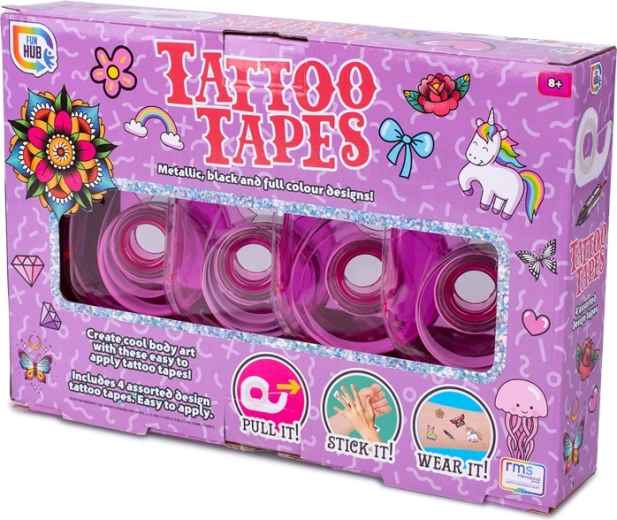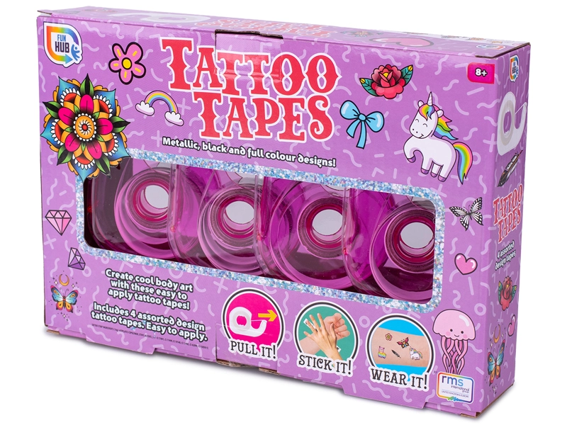 Odkryj zabawne i kreatywne taśmy klejące z motywem tatuażu dla dzieci od 8 lat. Każde opakowanie zawiera 4 samoprzylepne taśmy z różnymi wzorami, które pozwolą oryginalnie ozdobić przybory szkolne, prezenty i pamiętniki. Taśmy z krepowego papieru są lekko półprzezroczyste, łatwo się odklejają i nie pozostawiają śladów kleju. Praktyczne pudełko z ostrą ząbkowaną krawędzią zapewnia łatwe odrywanie i wygodne użycie w każdej chwili.