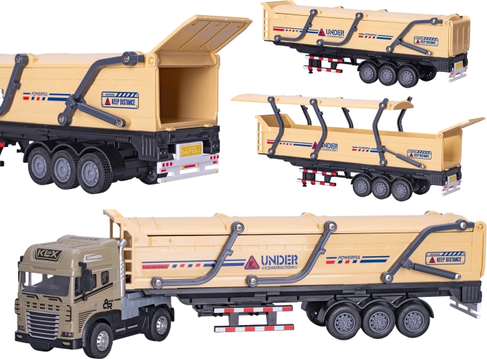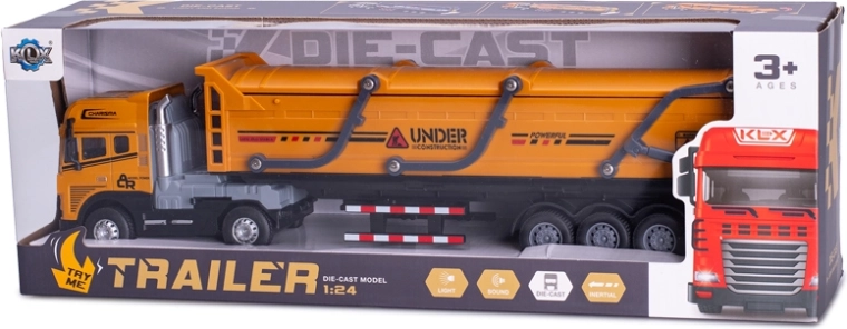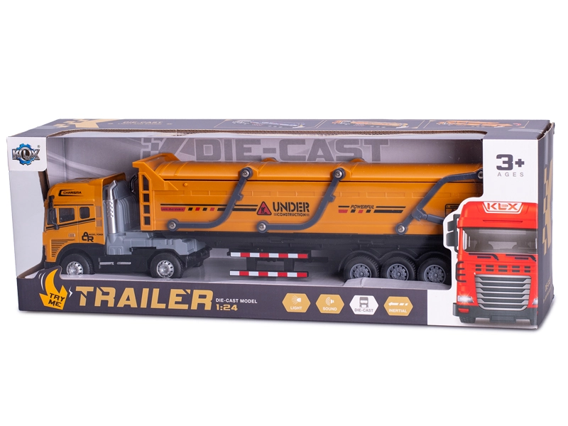 Odkryj szczegółowo wykonany model pojazdu ciężarowego w skali 1:24 o długości 39 cm, który łączy metal i plastik dla długiej trwałości. Dzięki napędowi inercyjnemu łatwo rusza bez konieczności używania baterii do jazdy, a efekty świetlne i dźwiękowe nadają zabawie autentyczności. W zestawie znajdują się 3× baterie LR44 do efektów, model jest odpowiedni od 3 lat i dostarczany w pudełku prezentowym. Dostępny w wariantach brązowym i pomarańczowym.