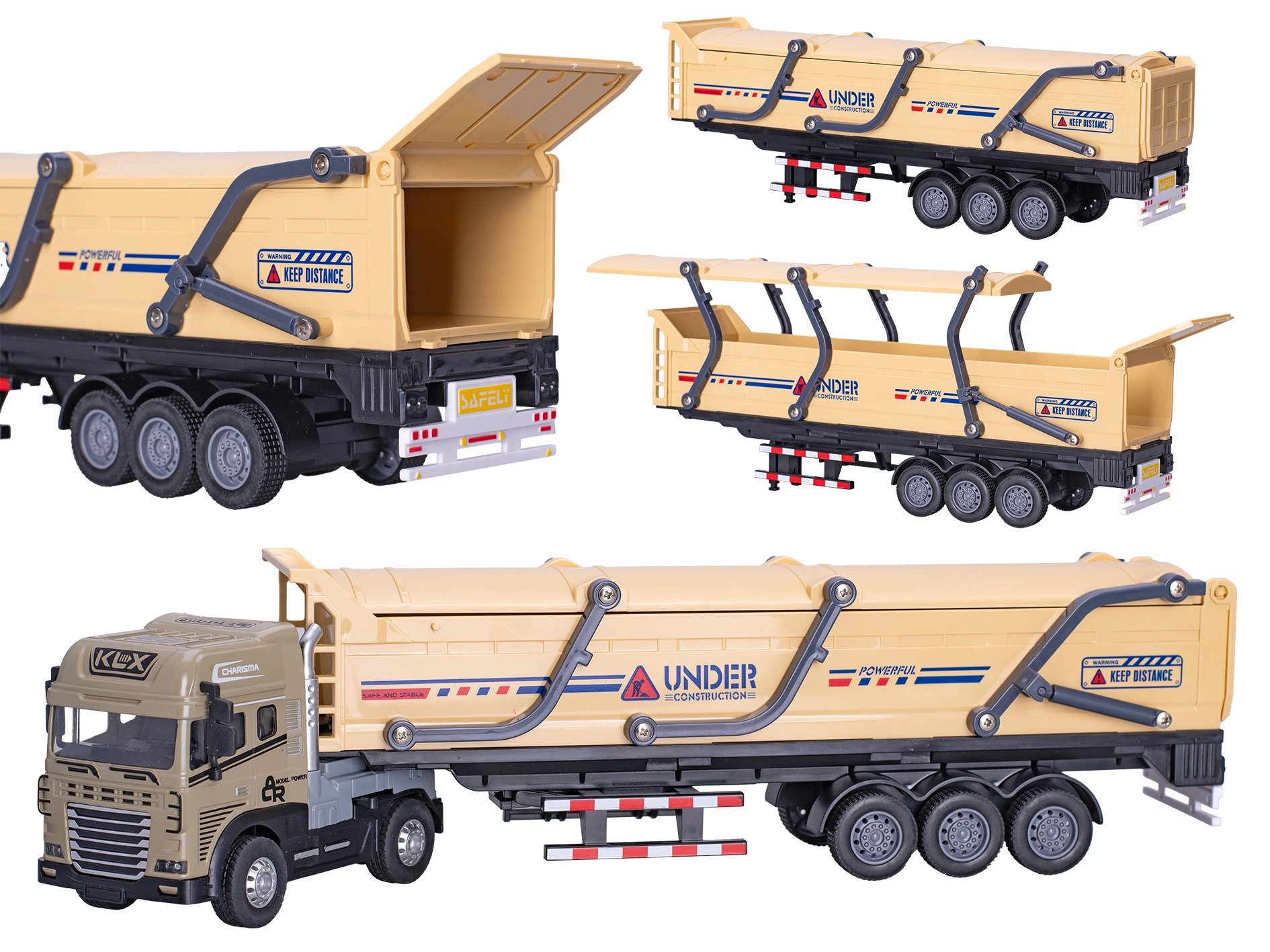 Realistyczna ciężarówka 1:24 ucieszy małych i dużych miłośników techniki. Metalowe części zwiększają trwałość, plastikowe elementy dodają finezyjnych detali, a kolorystyka brązowa lub pomarańczowa przyciąga wzrok od pierwszego spojrzenia. Dzięki światłu i dźwiękowi zabawa jest naturalna i pobudza dziecięcą wyobraźnię.
