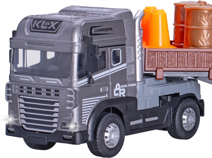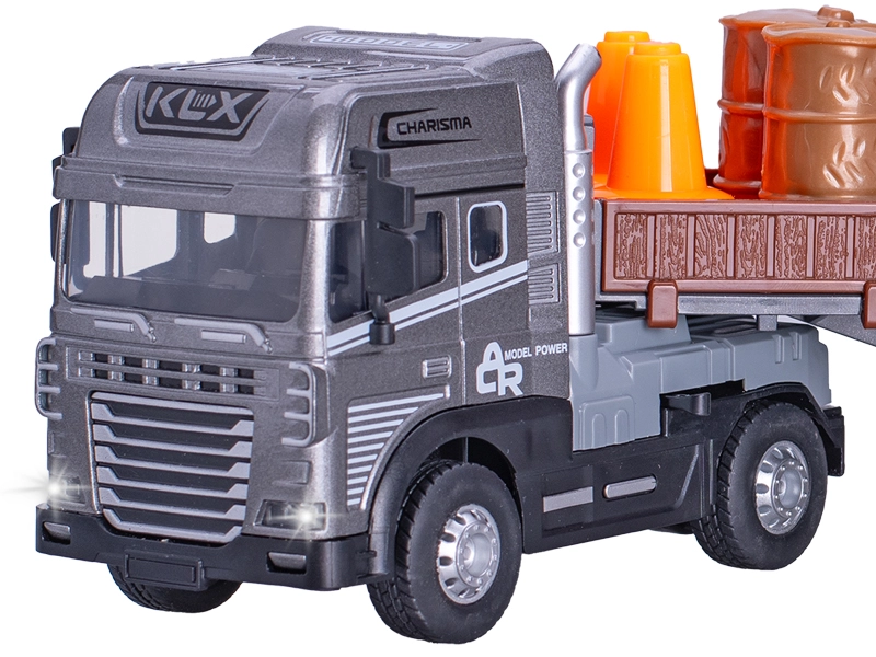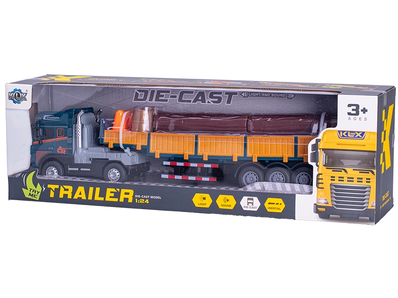 Szczegółowo opracowany model samochodu ciężarowego w skali 1:24 zachwyca długością 38 cm, realistycznymi efektami świetlnymi i dźwiękowymi oraz płynnym napędem na sprężynę (flywheel). Wytrzymałe połączenie metalu i plastiku zapewnia długą żywotność, a dwie wersje kolorystyczne ucieszą małych i dużych fanów ciężkiego sprzętu.