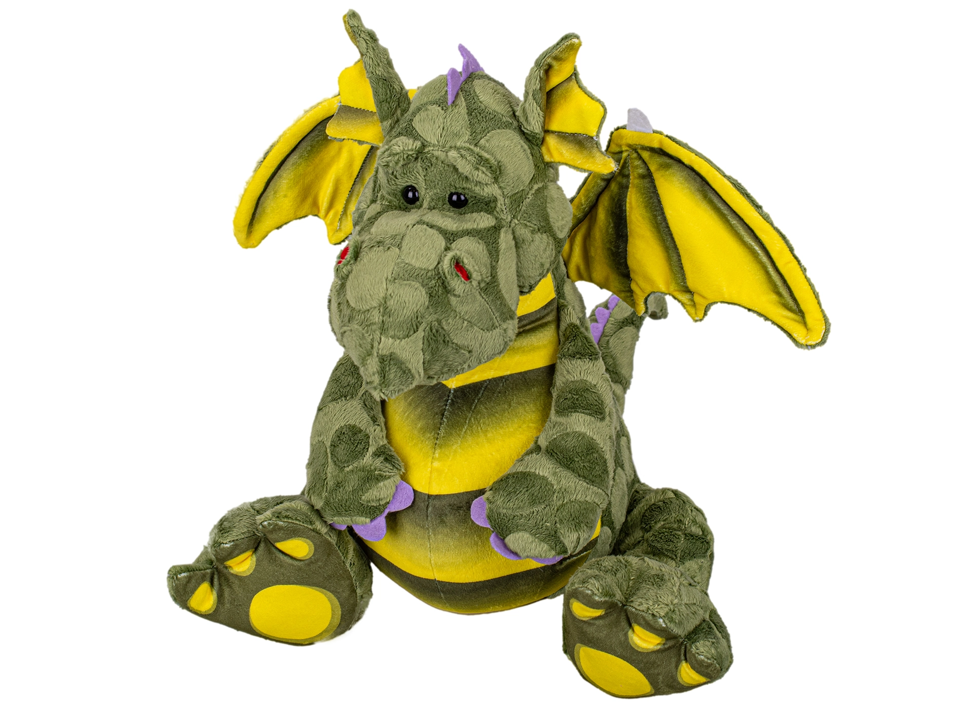 Ten mięciutki pluszowy smok zachwyci dzieci miłym wyrazem i przyjemnym w dotyku materiałem, który wręcz zachęca do przytulania. Dzięki siedzącej pozycji stabilnie trzyma kształt, więc nadaje się zarówno do łóżeczka, jak i na półkę jako dekoracja pokoju dziecięcego.