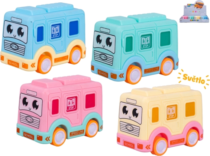 Kompaktowa zabawka dla małych kierowców: ten autobus o długości 8,5 cm oferuje napęd cierny dla płynnego ruchu do przodu oraz efekty świetlne dla jeszcze większej zabawy. Idealny dla dzieci od 3 lat, wspiera rozwój małej motoryki i wyobraźni. Dostępny w 4 kolorach – niebieskim, różowym, zielonym i żółtym.