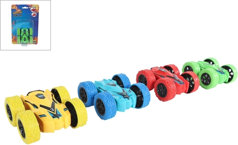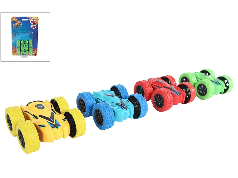 Poczuj adrenalinę z miniaturowym pojazdem kaskaderskim, który wykonuje efektowne salta i obroty o 180°. Napęd cierny zapewnia proste sterowanie – wystarczy auto pociągnąć do tyłu i puścić. Dzięki solidnemu wykonaniu z wytrzymałego plastiku radzi sobie z bardziej wymagającymi akrobacjami, pozostając lekkie i poręczne.
