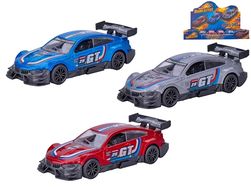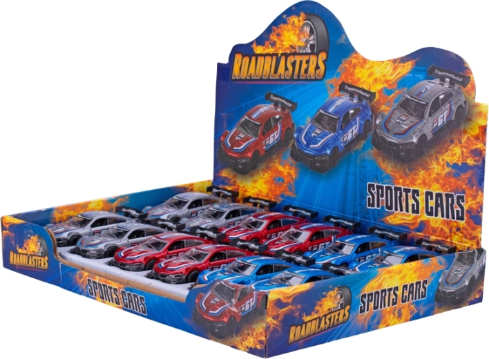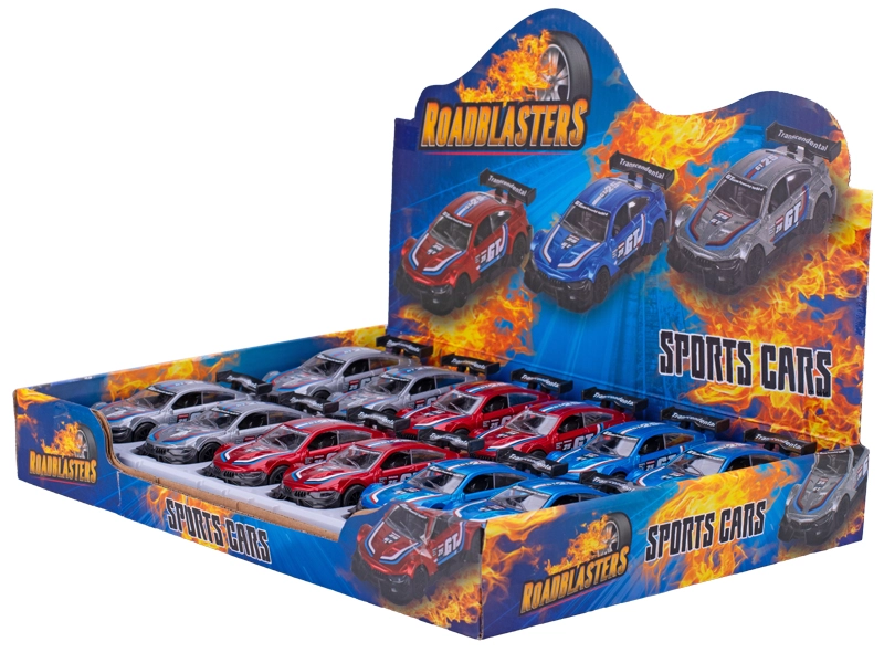 Odkryj dynamiczną jazdę z metalowym sportowym autem ROADBLASTERS. Realistyczny design i wysokiej jakości wykonanie z metalu z plastikowymi detalami czynią z niego wytrzymałą zabawkę do codziennych wyścigów w domu i w podróży. Dzięki napędowi typu pull-back start jest zawsze szybki i pełen akcji – po prostu pociągnij do tyłu, a auto pomknie do przodu.