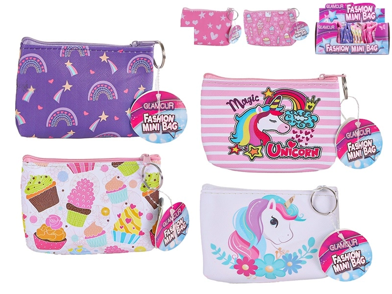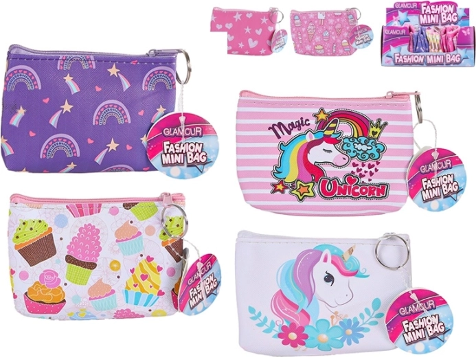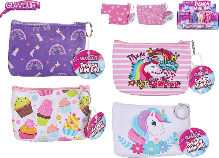 Stylowy i praktyczny portfel Glamour o wymiarach 13 × 9 cm to idealny towarzysz na co dzień. Dzięki kompaktowemu rozmiarowi łatwo mieści się w torebce lub kieszeni, a bezpieczny suwak chroni Twoje drobiazgi. Oferuje sześć radosnych wzorów z motywami lodów, jednorożców, tęczy i serduszek i jest odpowiedni dla dzieci od 3 lat.