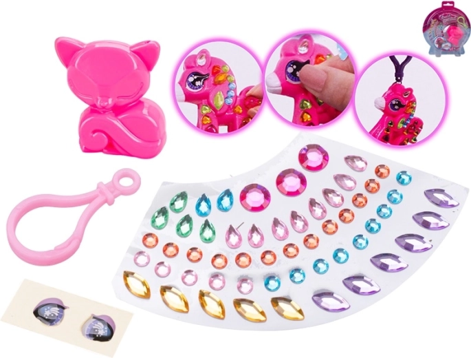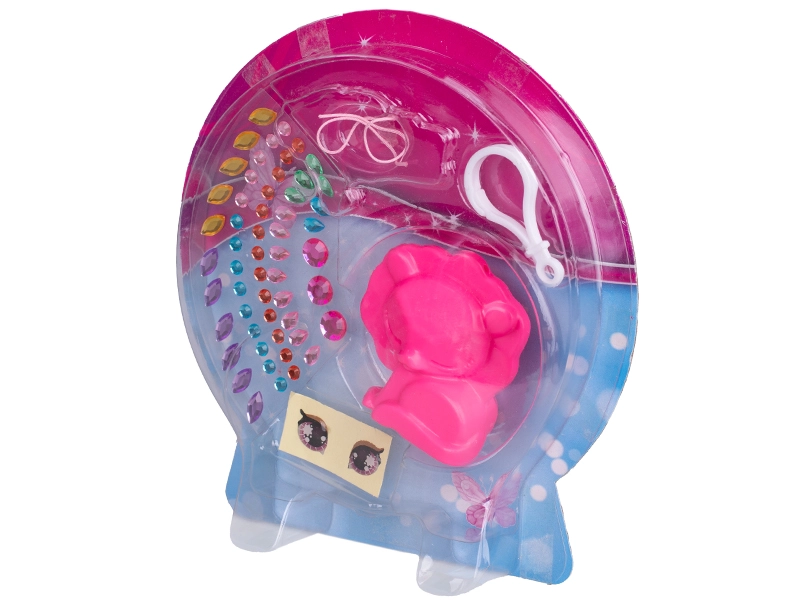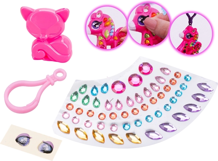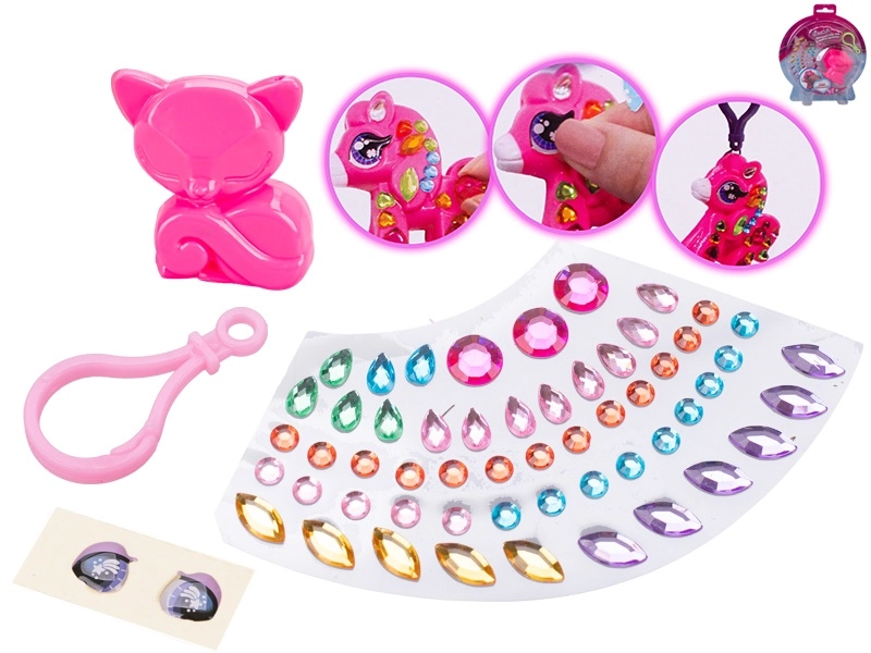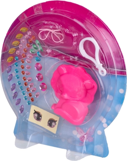 Zestaw zawiera zwierzątko, karabińczyk, kolorowe kryształki oraz samoprzylepne oczka – bez konieczności użycia dodatkowych akcesoriów.
