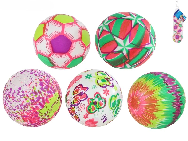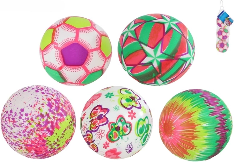 Różnorodne i kontrastowe wzory (gwiazdy, rozmyte kropki, rozmyte paski, wzór piłki nożnej oraz motyle) przyciągają uwagę i zachęcają do percepcji wzrokowej. W skład opakowania wchodzi praktyczna siatka, w której piłeczki łatwo przeniesiesz na boisko lub schowasz w domu.