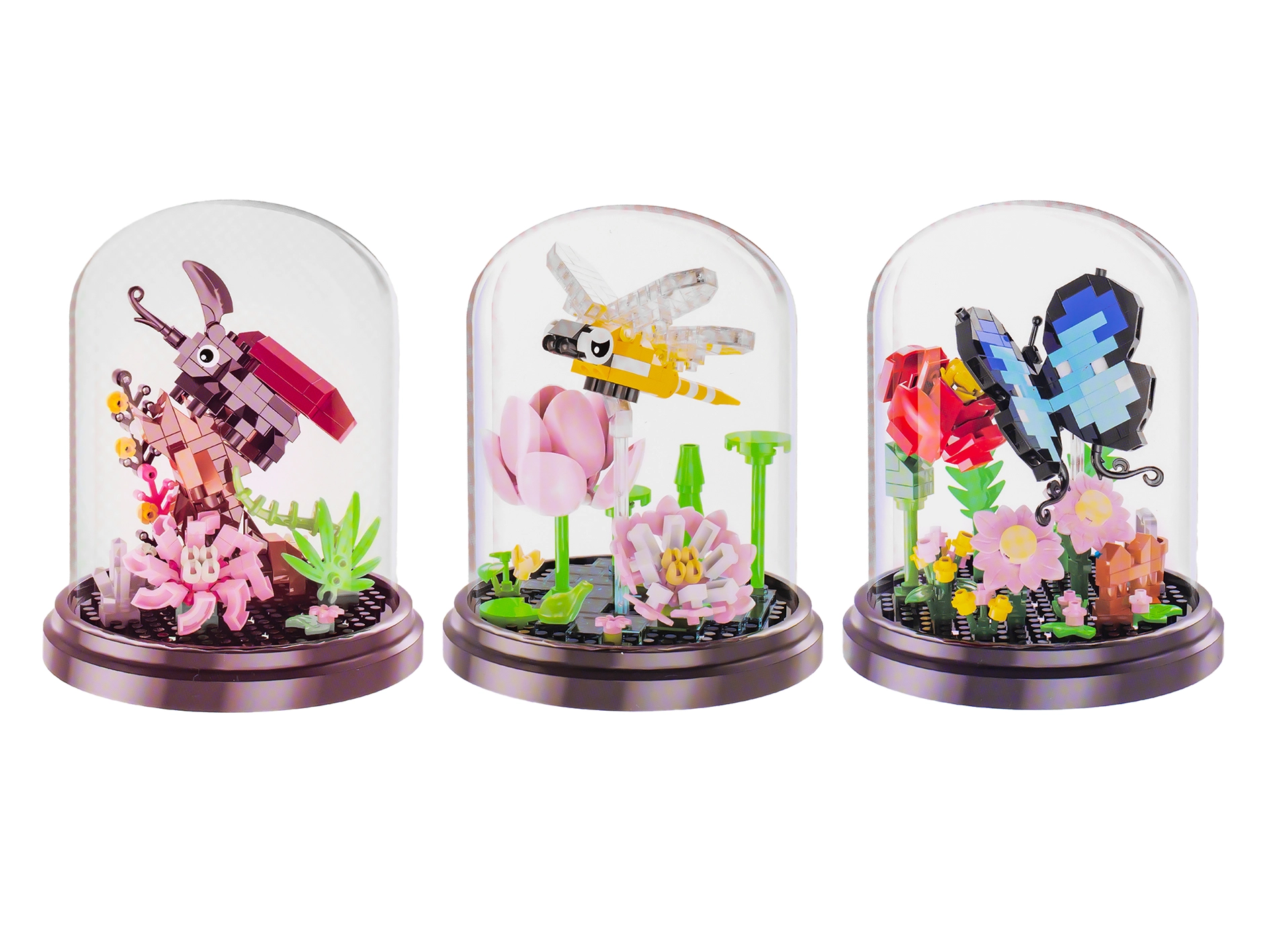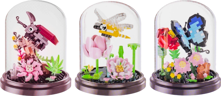 Kreatywne klocki konstrukcyjne dla dzieci od 6 lat umożliwiają złożenie czterech rodzajów owadów z kwiatem – motyla, pszczoły, chrząszcza i ważki. Zestaw o 253–281 elementach rozwija małą motorykę, logiczne myślenie i cierpliwość. W komplecie przezroczysta osłona przeciwkurzowa do łatwej ekspozycji gotowego modelu o wymiarach ok. 11 × 8,6 cm.