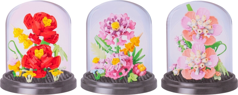 Ten zestaw klocków z kwiatami daje radość ze składania dzieciom i dorosłym oraz piękny efekt, który wyróżni się na półce lub biurku. Z 224–229 plastikowych elementów stworzysz realistyczny model jednego z czterech ulubionych kwiatów. Złożony kwiat łatwo wyeksponujesz dzięki przezroczystej osłonie przeciwkurzowej, która chroni go przed zabrudzeniami.