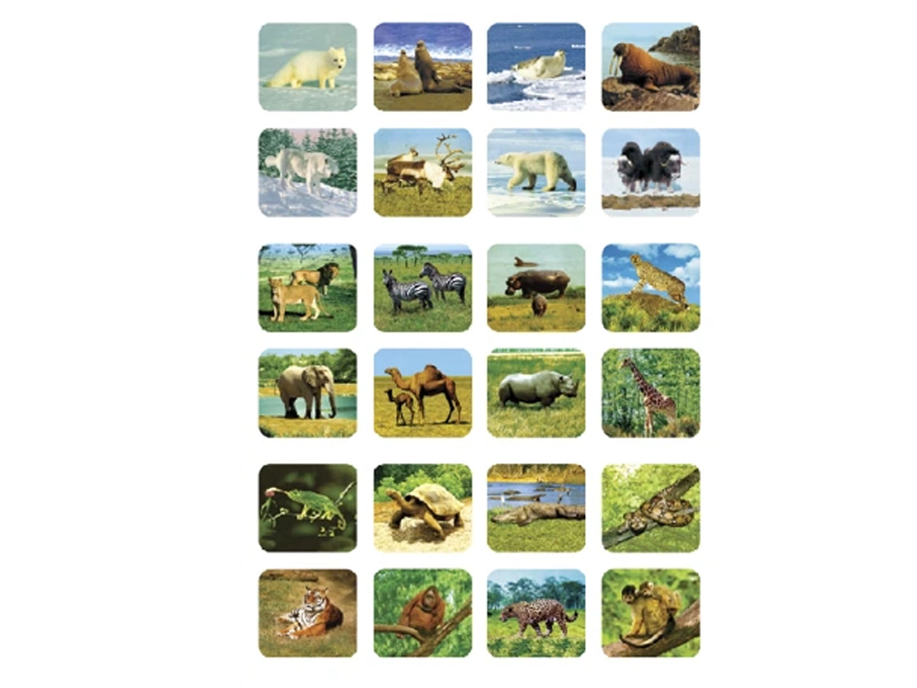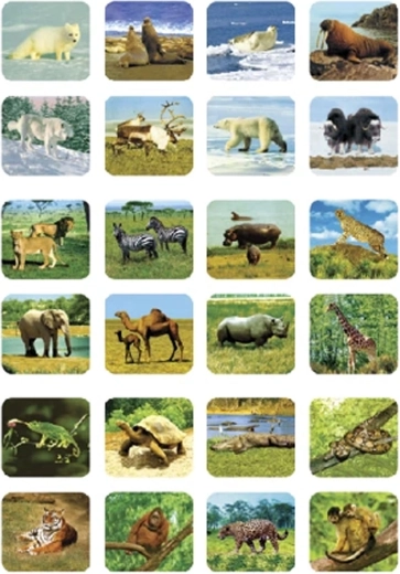 - 24 wyświetlane obrazy z motywami dżungli dla niekończącej się zabawy