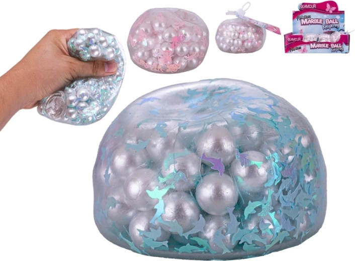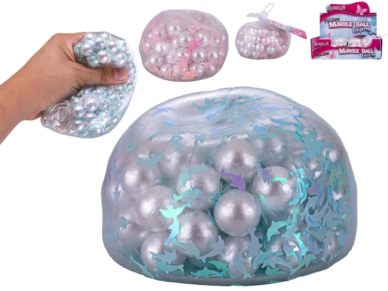 Glamour antystresowa piłka ucieszy dzieci i dorosłych. Błyszczące wykończenie oraz trzy atrakcyjne motywy – serduszka, delfiny i syreny – czynią z niej zabawne, a zarazem kojące akcesorium do codziennej zabawy i relaksu. Po ściśnięciu chrupiące kuleczki w środku przemieszczają się, lekko pękają i tworzą przyjemny dźwięk, który pomaga w koncentracji i odprężeniu.