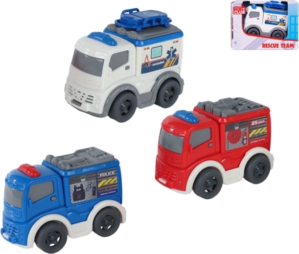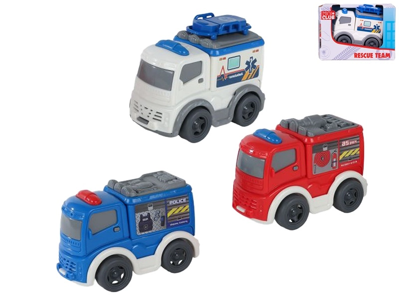 Dostępne są trzy lubiane rodzaje – radiowóz policyjny, wóz strażacki i karetka – które inspirują do ekscytującej zabawy w ratunek i rozwijają wyobraźnię. Każdy pojazd jest pakowany pojedynczo w pudełku, dzięki czemu świetnie nadaje się na drobny prezent.