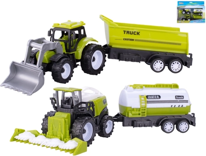Ten atrakcyjny zestaw łączy szczegółowo wykonane traktor i kombajn, każdy z własną przyczepą. Dzięki wolnemu biegowi pojazdy są łatwe w prowadzeniu i poruszają się płynnie po każdej powierzchni. Dzieci mogą tworzyć własne historie z farmy, przewozić ładunki i odkrywać świat maszyn rolniczych.