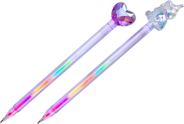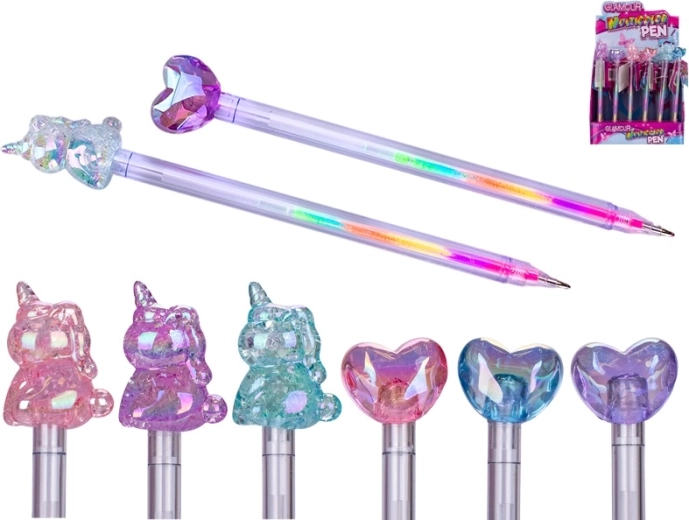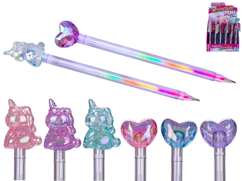 Stylowy wielokolorowy długopis GLAMOUR łączy zabawę i praktyczność do szkoły i biura. Dzięki kilku wkładom w jednym długopisie łatwo przełączasz kolory w zależności od nastroju. Ergonomiczny kształt zapewnia wygodne pisanie nawet przy dłuższym użytkowaniu, a atrakcyjny design z motywem serca lub jednorożca ucieszy dzieci i dorosłych. Odpowiedni dla dzieci od 3 lat.