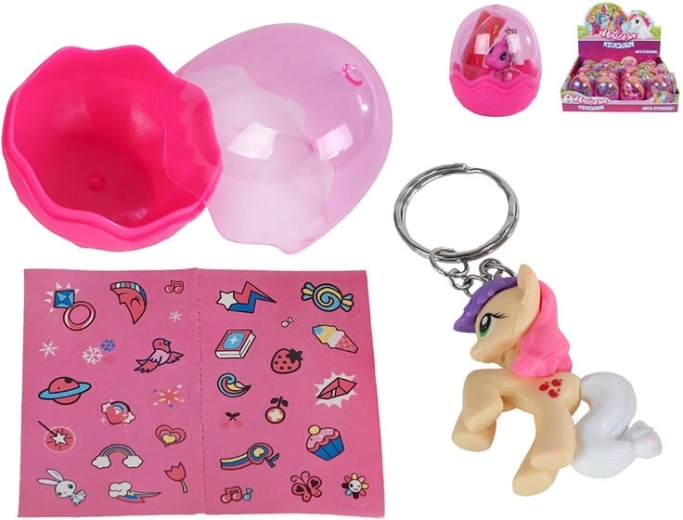Odkryj magię jednorożców z brelokiem, który stanie się stylowym dodatkiem do Twoich kluczy, plecaka lub piórnika. Dzięki praktycznemu rozmiarowi 5 cm jest lekki, poręczny i gotowy, by cieszyć każdego dnia. Opakowanie w jajku z naklejkami zamienia rozpakowywanie w radosną niespodziankę.