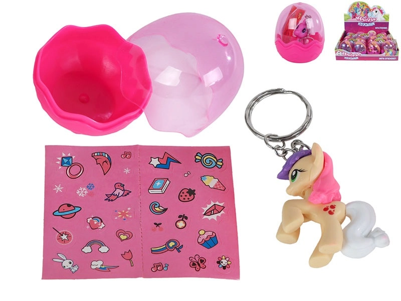 Uroczy brelok do kluczy w kształcie jednorożca zachwyci małych i dużych fanów magicznych stworzeń. Oferuje kompaktowy rozmiar 5 cm, jest wykonany z trwałego plastiku i dostarczany w jajku z naklejkami dla jeszcze większej zabawy. Dostępnych jest sześć wariantów kolorystycznych, więc każdy znajdzie swojego faworyta. Idealny jako mały upominek lub kolekcjonerski dodatek dla dzieci od 3 lat.