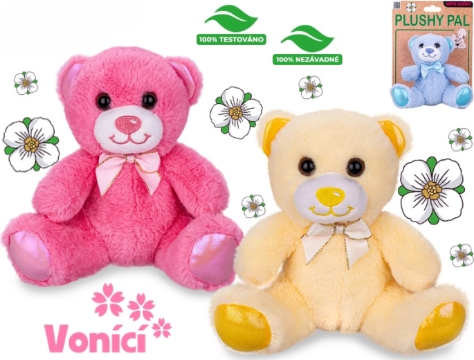 Uroczy siedzący miś Plushy Pal o wysokości 15 cm wykonany z miękkiego, delikatnego pluszu, odpowiedni od urodzenia (0m+). Dzięki kompaktowemu rozmiarowi świetnie mieści się w dziecięcej rączce i wózku, delikatnie pachnie dla ukojenia przy zasypianiu, a ozdabia go elegancka kokardka. Dostępny w trzech kolorach: niebieskim, różowym i żółtym.