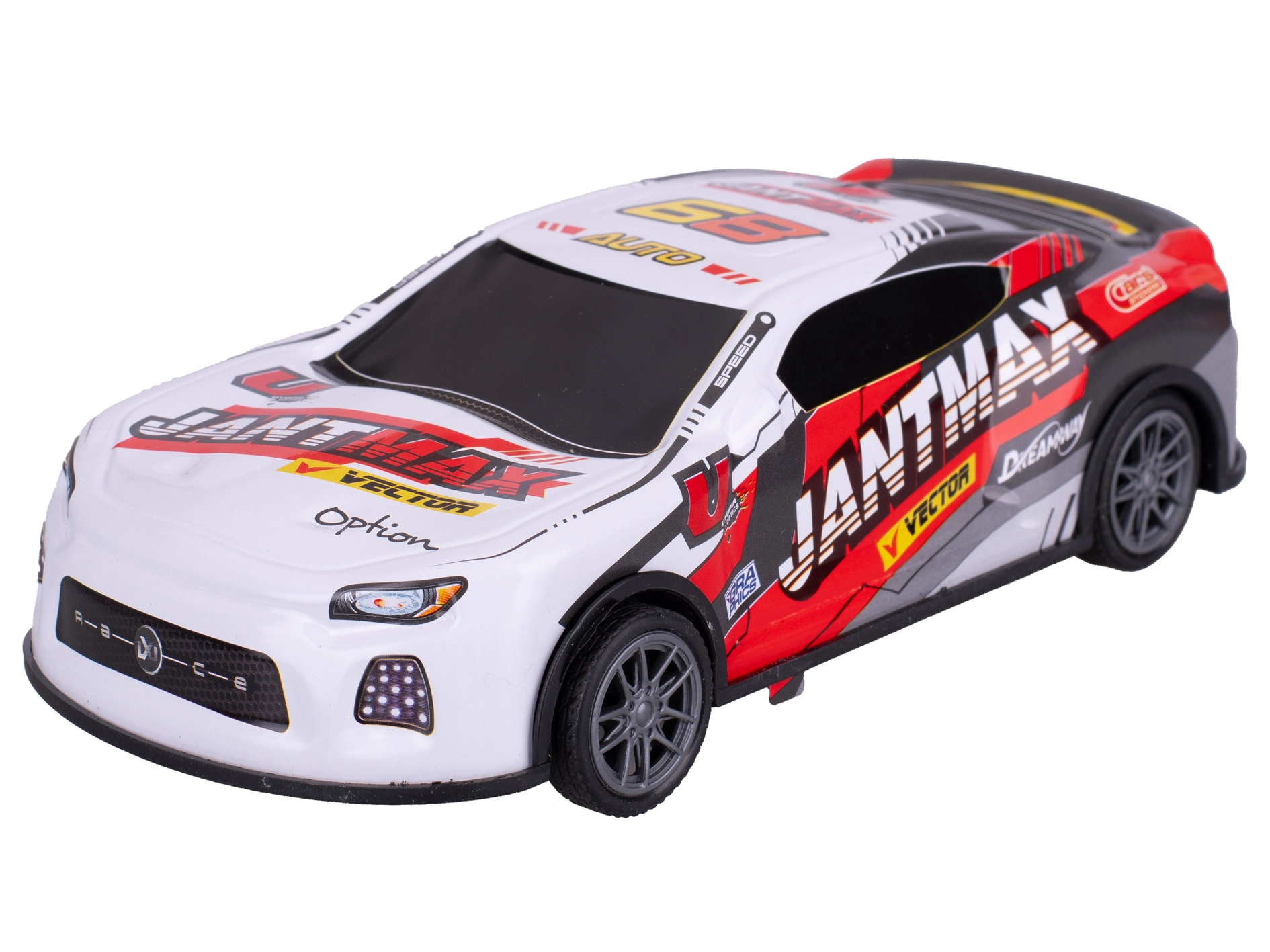 - Dynamiczne driftowanie dzięki napędowi ciernemu – bez baterii, wystarczy pchnąć i jechać.