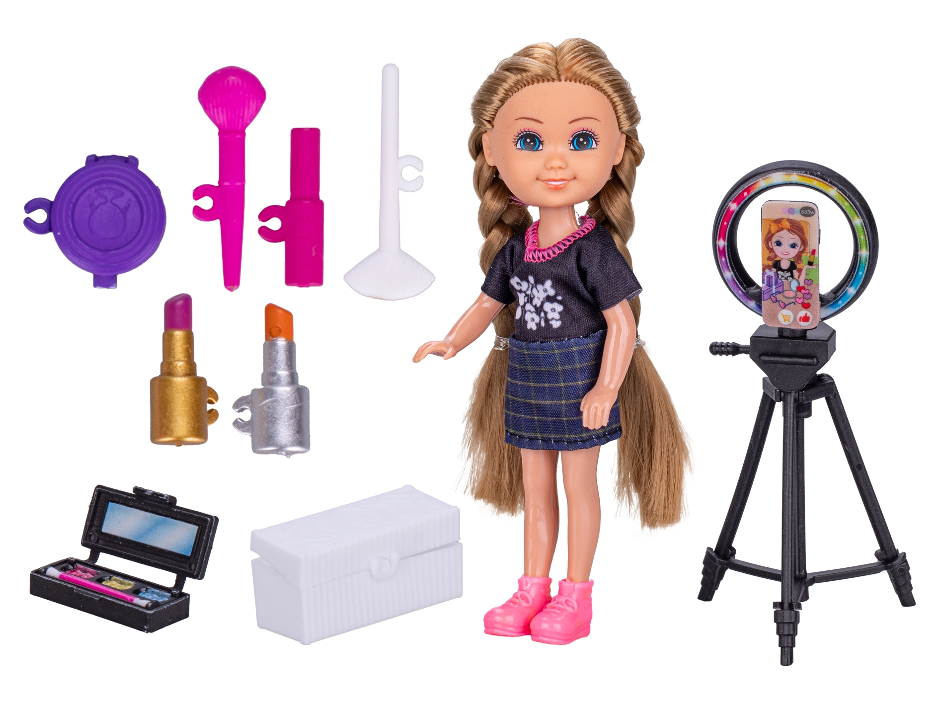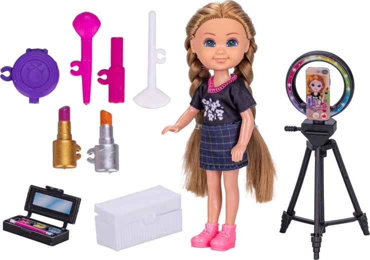 Stylowa lalka o wysokości 14 cm dla małych fanów mediów społecznościowych oferuje nowoczesny wygląd i modne dodatki. Dzięki akcesoriom takim jak telefon komórkowy czy kosmetyki dzieci z łatwością odtworzą świat internetowych gwiazd. Zabawka wspiera kreatywność, rozwój mowy i wyobraźnię, jest wykonana z bezpiecznego plastiku i idealnie nadaje się do zabawy w domu oraz w podróży.