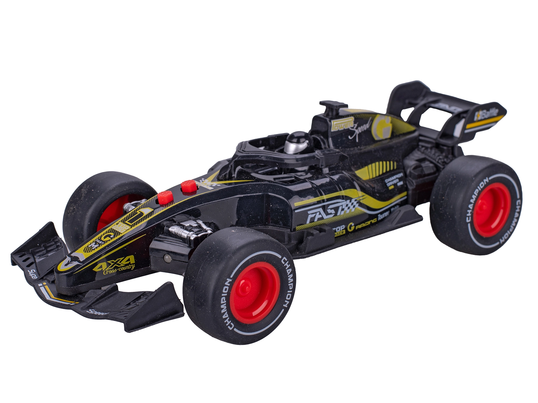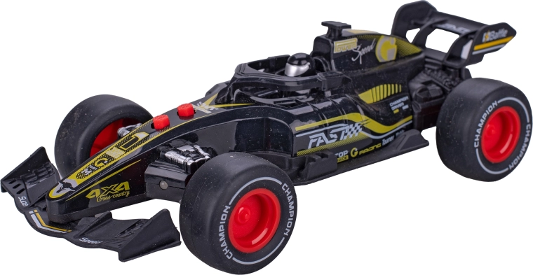 Poczuj emocje jak na prawdziwym torze z tą wyścigową formułą o długości 19 cm. Dzięki napędowi ciernemu po rozpędzeniu jedzie sama, efekty świetlne i dźwiękowe potęgują realizm, a para figurek kierowców daje jeszcze więcej możliwości zabawy. Zabawka wykonana jest z wysokiej jakości plastiku, jest wytrzymała, odpowiednia od 3 lat, a baterie są w zestawie – zabawa może zacząć się od razu.