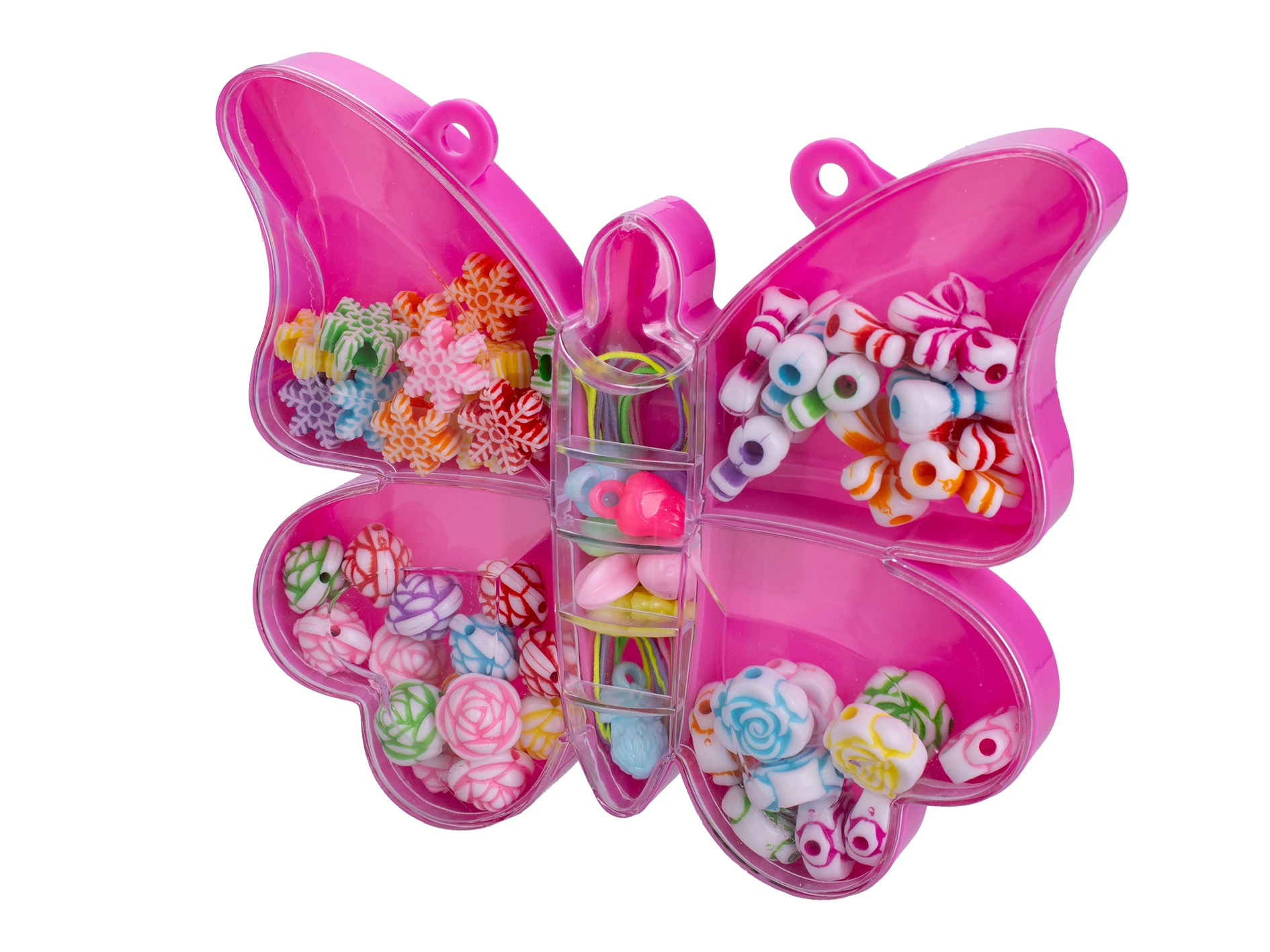 Odkryj zabawny zestaw koralików do nawlekania, dzięki któremu dzieci od 3 lat stworzą własną biżuterię i dekoracje. Zestaw zawiera 20 kolorowych koralików w kształcie motyli i muszelek, umieszczonych w praktycznym pudełku dla łatwego przenoszenia. Tworzenie wspiera małą motorykę, cierpliwość i kreatywność.