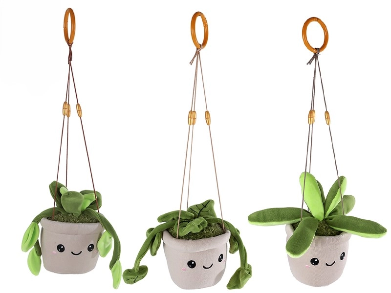 Wybierz jeden z kilku wariantów wyglądu, aby dopasować do swojego stylu: z jasnozielonymi zwisającymi kwiatami, z ciemnozielonymi zwisającymi liśćmi lub z wyrazistymi, grubymi liśćmi. Ta tekstylna roślina to nie tylko efektowny element designu, ale też bodziec do rozwoju sensorycznego dzieci – delikatna struktura pluszu i interesujące kształty zachęcają do dotyku i odkrywania.