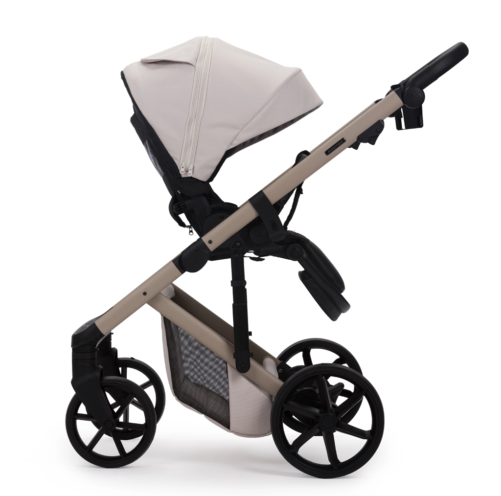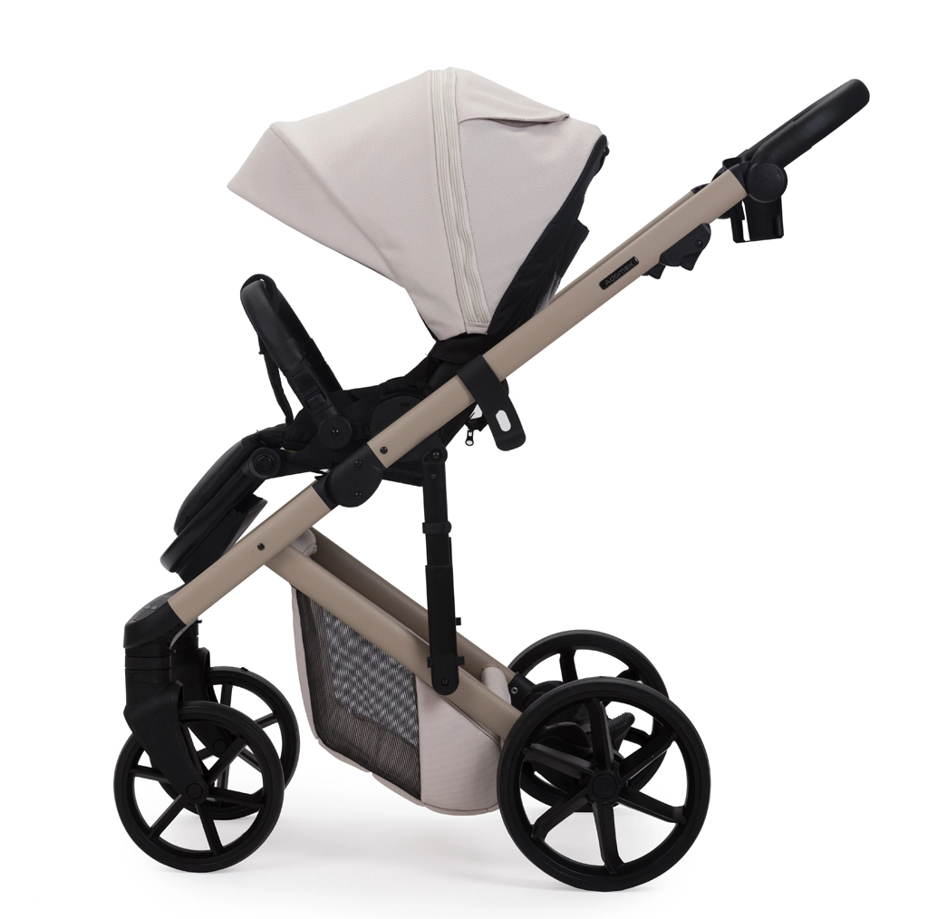 Stylowy i wygodny wózek ADAMEX Dolce 2w1 w odcieniu Vanilla jest idealny na codzienne spacery w mieście i w terenie. Oferuje doskonale amortyzowaną ramę, szybkie płaskie składanie gondoli, spacerówkę montowaną przodem lub tyłem do kierunku jazdy oraz bogaty zestaw akcesoriów, w tym osłonę przeciwsłoneczną, moskitierę i folię przeciwdeszczową. Duże koła, pojemny kosz i przemyślana wentylacja gondoli zapewniają komfort dla dziecka i rodziców w każdych warunkach pogodowych.