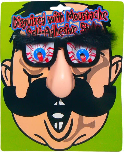 - Duży plastikowy nos, krzaczaste brwi
