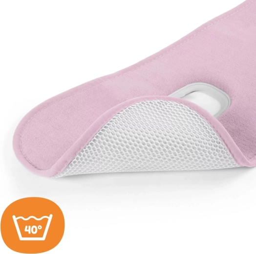 Wkładka została zaprojektowana z myślą o praktycznym użytkowaniu: ma otwór na środkową klamrę i boczne wyprofilowanie na pasy barkowe, dzięki czemu nie przesuwa się i nie ogranicza zapięcia. Wierzchnia warstwa z organicznej bawełny jest przyjazna dla skóry, wolna od pestycydów i łatwa w pielęgnacji – wkładkę można prać w 40 °C.