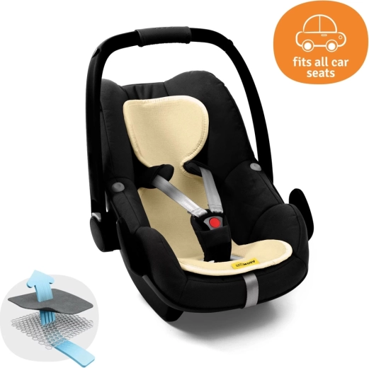 Oddychająca wkładka AeroMoov do fotelików samochodowych 0–13 kg zapewni Twojemu maluszkowi komfort przez cały rok. Dzięki strukturze 3D plastra miodu umożliwia maksymalny przepływ powietrza, ogranicza pocenie i utrzymuje przyjemną temperaturę ciała. Wkładka jest miękka, przyjemna w dotyku, a zewnętrzna strona z organicznej bawełny nadaje się do prania w 40 °C.
