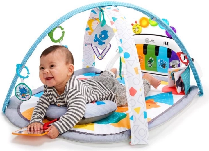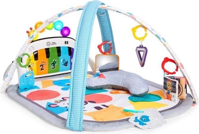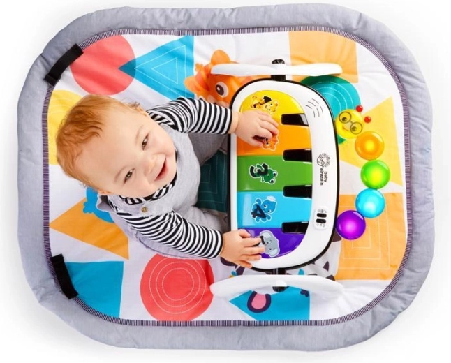 Ciesz się radosnymi chwilami z matą do zabawy 4w1 Kickin' Tunes od BABY EINSTEIN, która rośnie razem z Twoim maluchem. Interaktywny fortepian Magic Touch reaguje na dotyk palca i kopnięcie bez przycisków, oferuje ponad 70 melodii i dźwięków, a wraz z 7 odpinanymi zabawkami wspiera rozwój sensoryczny, małą i dużą motorykę oraz zabawę podczas leżenia na plecach, czasu na brzuszku, siedzenia i zabawy poza matą.