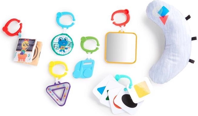 - 7 odpinanych zabawek, w tym fortepian Magic Touch i poduszka dla wygodnego „pływania na brzuszku”.