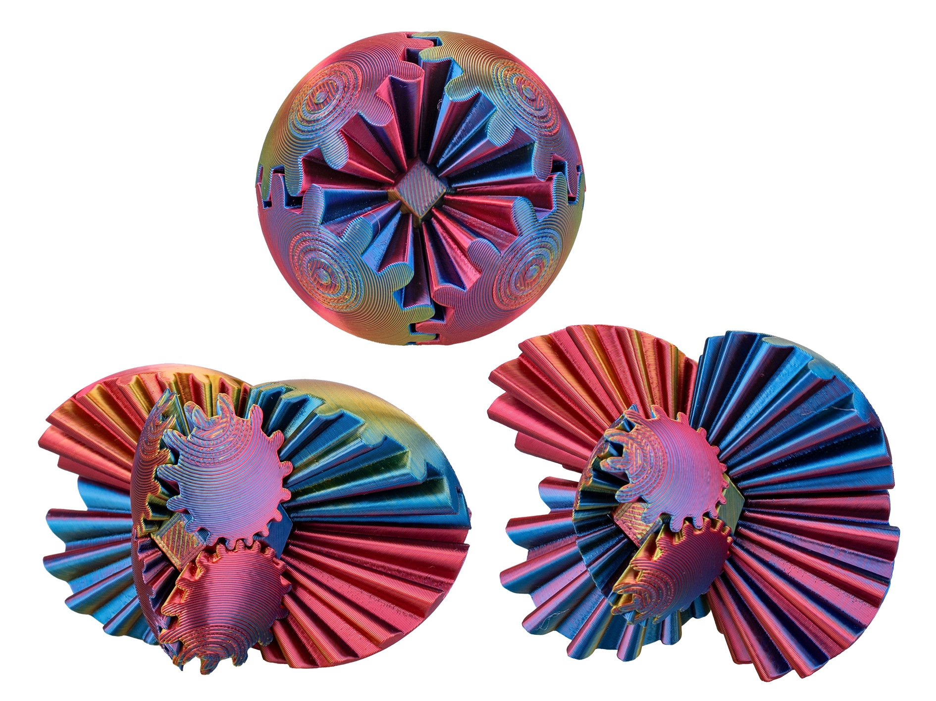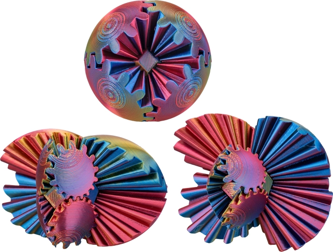Ta sprytna łamigłówka łączy narzędzie antystresowe z logicznym wyzwaniem. Unikalny fraktalny design z kołami zębatymi umożliwia płynne i stale nowe ruchy, które zapewnią rozrywkę w domu, w biurze i w podróży. Dwukolorowe wykonanie (niebiesko-zielone lub niebiesko-fioletowe) jest nie tylko atrakcyjne, ale także pomaga w orientacji podczas składania.