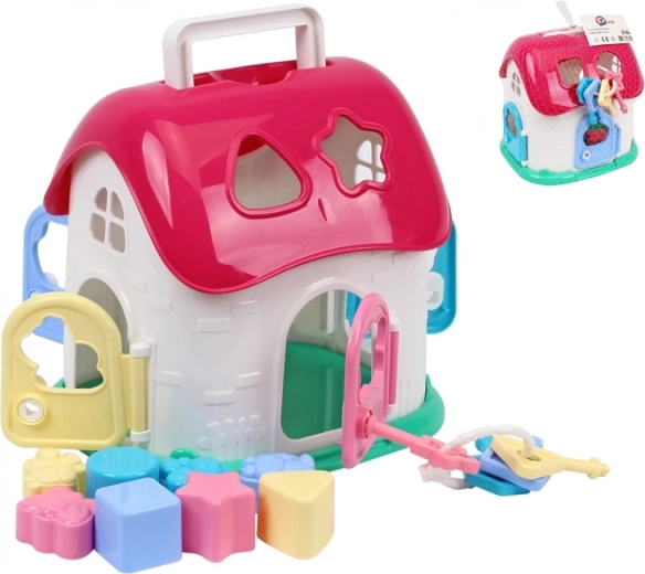 Zabawka wykonana jest z wysokiej jakości, bezpiecznego i wytrzymałego plastiku, który wytrzymuje codzienne użytkowanie. Dzięki kompaktowym wymiarom jest lekka i łatwa do przenoszenia – doskonała również na wyjazdy. Zestaw obejmuje domek, pęk kluczy oraz 8 kształtów do sortowania w atrakcyjnych kolorach, które utrzymują uwagę dziecka.