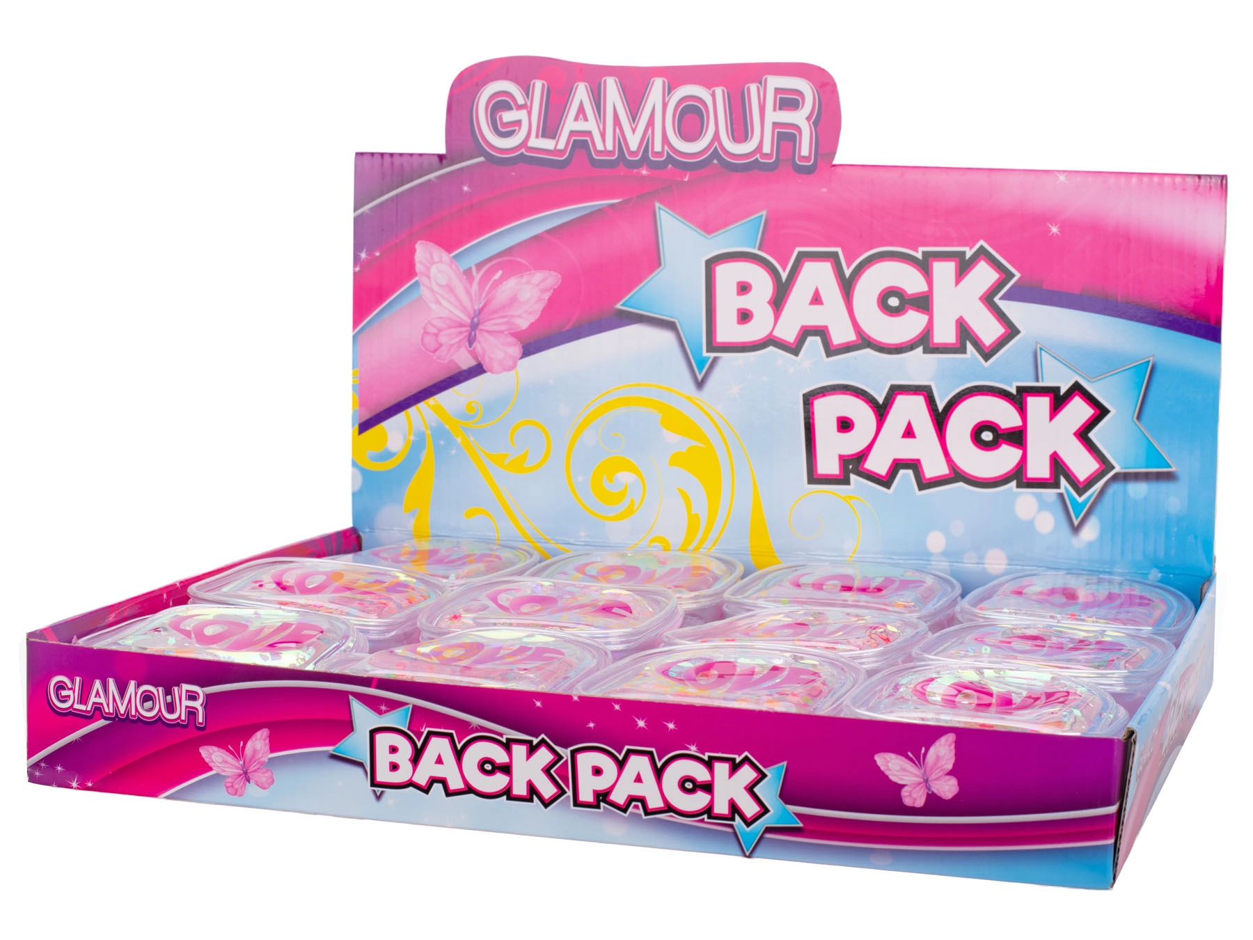 - Holograficzny efekt z napisem „LOVE” i brokatem