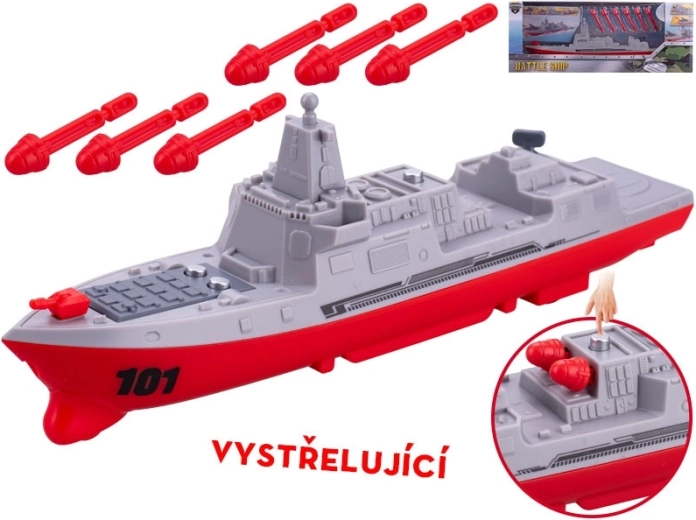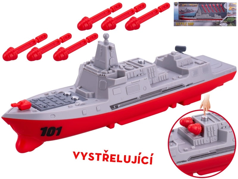 Realistyczna zabawka okrętu wojennego o długości 24 cm zapewnia dzieciom pełną akcji zabawę bez baterii. Dzięki napędowi bezwładnościowemu statek płynnie rusza do przodu i wystrzeliwuje pociski, co dodaje jeszcze więcej emocji. Autentyczne szare wykończenie z czerwonymi detalami spodoba się małym fanom techniki, a łatwe sterowanie wspiera rozwój motoryki i koordynacji. Odpowiednie dla dzieci od 3 lat.