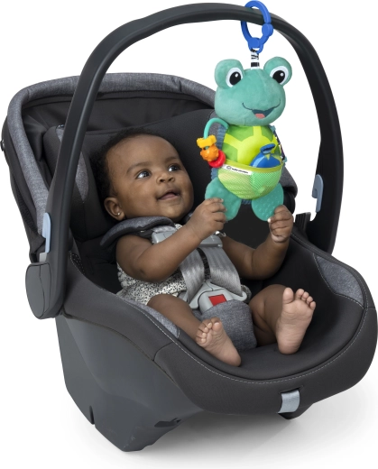 Przypnij żółwia do wózka, fotelika samochodowego lub maty do zabawy i zapewnij maluszkowi rozrywkę oraz ukojenie w każdym miejscu.