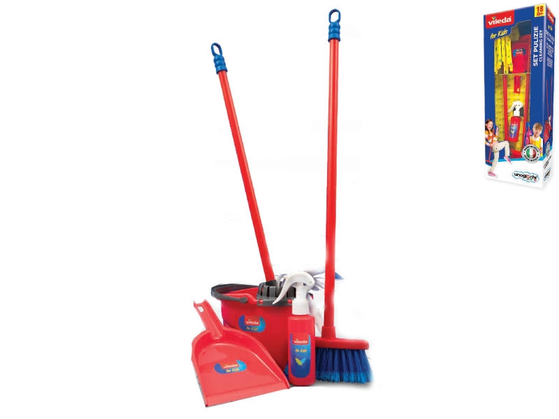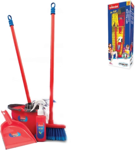 Zabawny i realistyczny zestaw do sprzątania dla dzieci od 18 miesięcy inspirowany wyposażeniem Vileda. Zawiera 5 podstawowych narzędzi – wiadro z wyciskaczem, mopa, miotłę, szufelkę i trzepaczkę do dywanów. Lekka i wytrzymała konstrukcja z tworzywa, dopasowana do dziecięcych dłoni, wspiera rozwój motoryki oraz poczucie porządku.