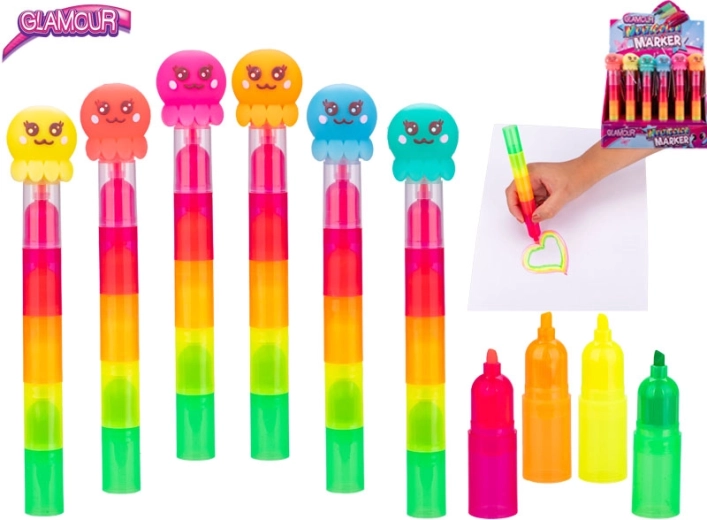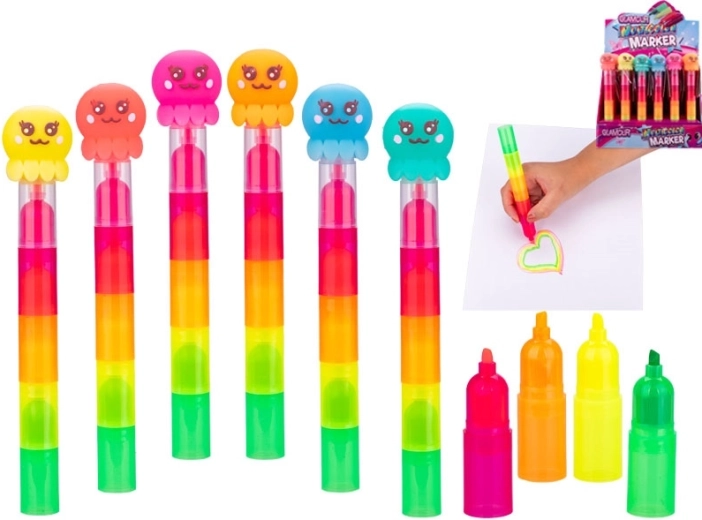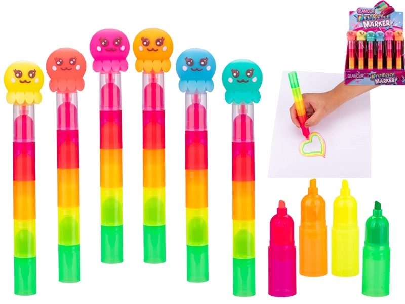 Odkryj zabawny i praktyczny sposób zakreślania. Ten pięciokolorowy zakreślacz w kształcie ośmiornicy łączy pomarańczowy, różowy, niebieski, zielony, żółty i czerwony w jednym korpusie, dzięki czemu możesz szybko przełączać kolory bez zmiany narzędzia. Dzięki długości 18 cm i średnicy 3 cm świetnie leży w dłoni i idealnie nadaje się do codziennego użytku.