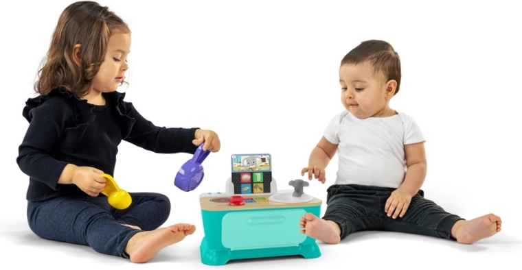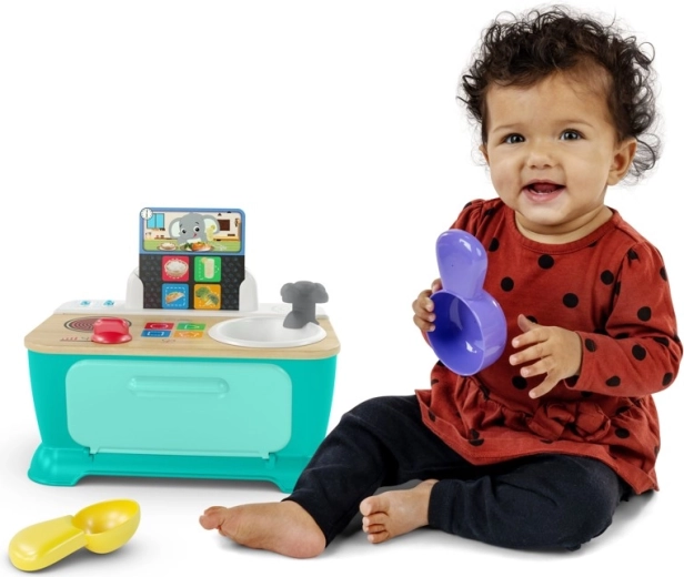 Baby Einstein Magic Touch Kitchen daje dzieciom od 9 miesięcy do 4 lat radość odkrywania dzięki realistycznym dźwiękom, efektom świetlnym i muzyce. Z pomocą kart przepisów można „ugotować” śniadanie, obiad i kolację – wystarczy dotknąć ultraczułej płyty i podążać za obrazkami. Obrotowe pokrętła kuchenki i kranu aktywują efekty, które zachęcają do powtarzania i rozwijają małą motorykę.
